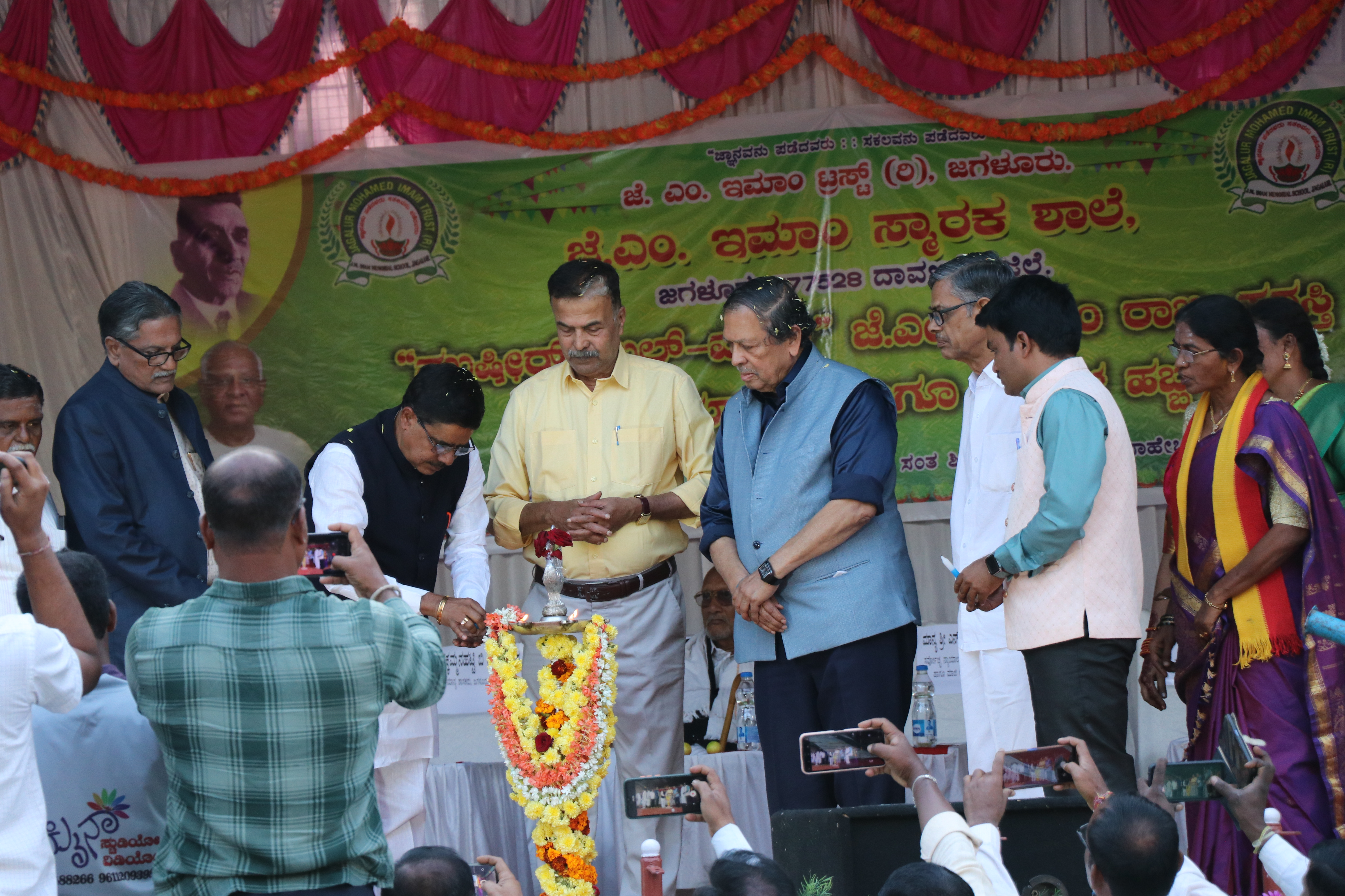 Following Chairman Haji J.K. Husain Miya Saab's wishes, a Folk Art Festival was held in Jagaluru taluk, featuring a grand procession, a feast, and honors for various folk artists with cash rewards and mementos.